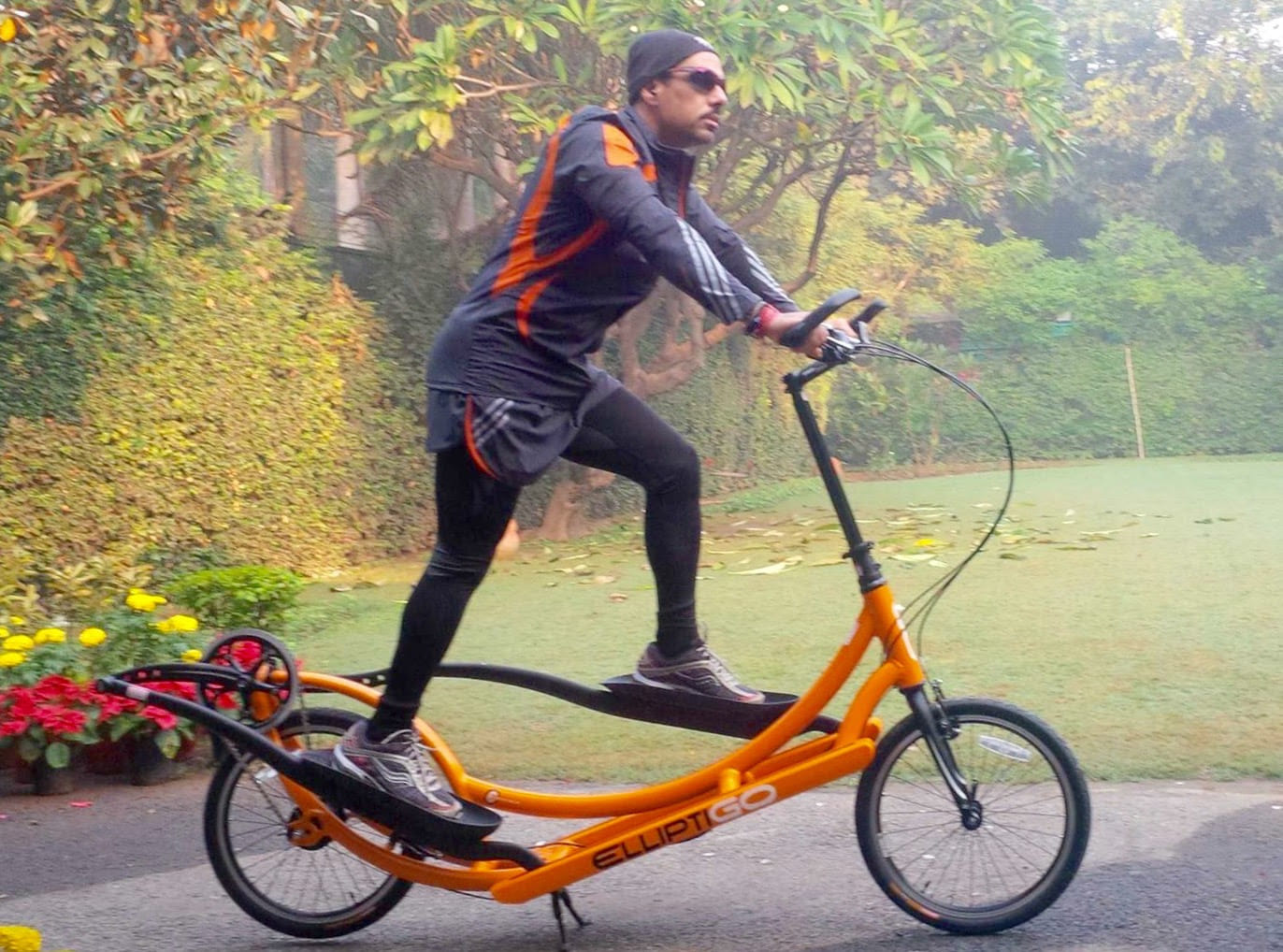 Who knows Rob might fly in politics someday, like he does on his ElliptiGo:
