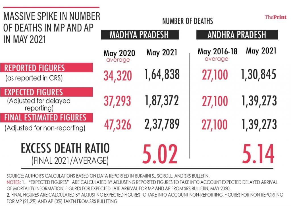 Let us begin with the latest data bomb. Last week, data journalist S. Rukmini published in Scroll the entire data set on the number of deaths in Madhya Pradesh and Andhra Pradesh (and partly on Tamil Nadu) as recorded in the official Civil Registration System (CRS). So, now we have month-by-month break up of the number of deaths officially recorded in these states for each district and smaller units. This data enables us to begin answering the big question.