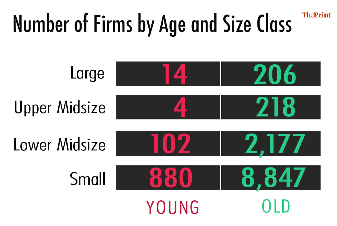 There are five takeaways from Table 1. First, 91 per cent of India’s firms are old, 78 per cent are small, and 71 per cent are old and small. Given that the Prowess database does not include many small firms, the true estimate of the share of small firms in the population of firms is likely much greater.