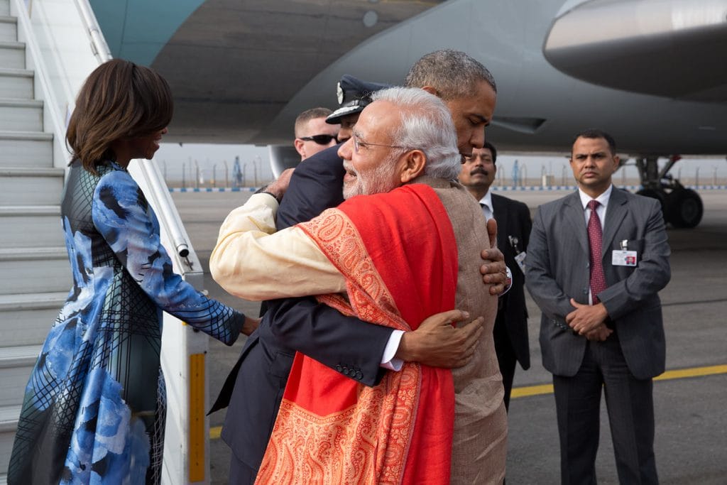 In these images, Modi’s always looking like he’s the boss, he’s in control of the meeting, he’s showing the path to his counterpart from another country. Modi hugs world leaders like he’s conquering them, and thus India is conquering the world.