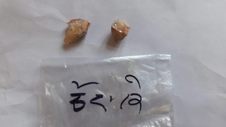 In our practice, these conditions can be cured by a special stone called Chug Jhi (Cong Zi – Coloitum) that is commonly found across most regions of Spiti. This stone is shiny, and usually white in color. Two varieties of this stone are found in my high-altitude village of Demul. These two varieties are addressed as Pho Chong (male) and Mong Chong (female), but when it comes to treatment, the male stone is used to treat female patients and vice versa.