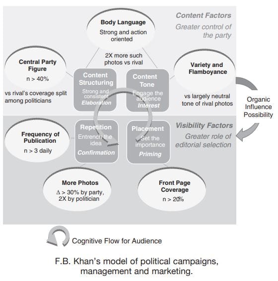 While visibility factors are the ones that first jump out at the viewers and create the first impressions in line with the priming and framing theories described at length in earlier chapters, it is the content factors that first influence the editors for the visibility factors to be what they are, before doing their bit for the readers. BJP could have used these indicators to devise a strategic photographic package that was picked up by the newspapers. The newspapers then themselves had a role to play in pushing out the visibility factors in terms of placement, structuring and frequency to the end readers.