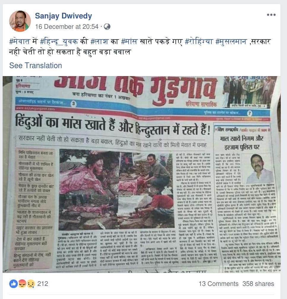“डरावनी खबर – हिन्दू का कतल कर उनका मास खा रहे रोहिंग्या, मेवात का मामला, खबरविचलित कर सकती है Horrifying news – Rohingyas are killing Hindus and eating their flesh, a case from Mewat, this news may send shivers down your spine.”