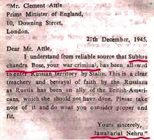The letter is supposed to have been dictated by Nehru and was addressed to the then prime minister of Britain. In this letter, Nehru alludes to the supposed presence of Netaji Subhas Chandra Bose in Russia, months after reports emerged that he had died in a plane crash in Taiwan in August 1945.
