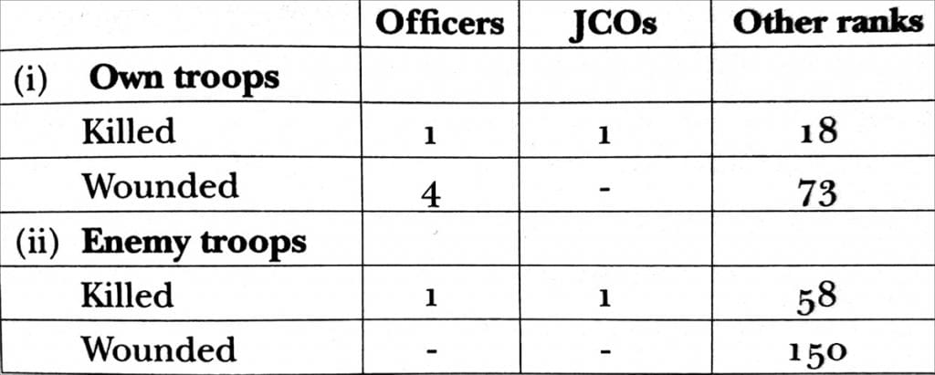 (iv) The enemy mounted a furious counter-attack on 29th August in a desperate bid to recapture this prestige area. The attack was repulsed. To consolidate their positions the battalion captured RING CONTOUR NR 0993 on 30 August and point 8766 NR 1191 a day later. Major (now Lieut Colonel) RS DAYAL who had so ably led his troops in a series of brilliant actions culminating in the capture of the Pass, was awarded the MVC.