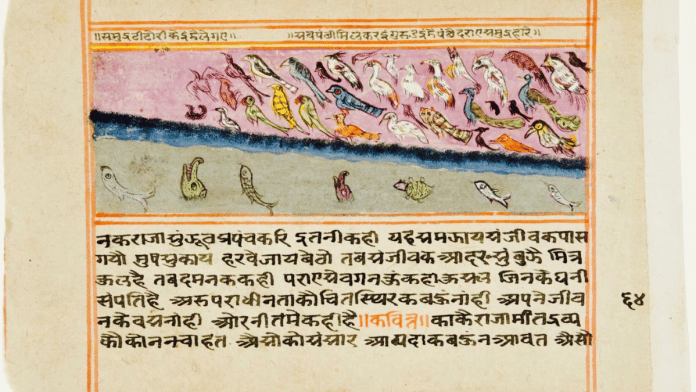 close to 200 BCE, it came to be known from ‘Java to Iceland’, as has been said; and drawn upon by Aesop at one end and La Fontaine at the other. Nothing is known with certainty about the author but a learned pandit, Vishnu Sharma by name, is generally credited with