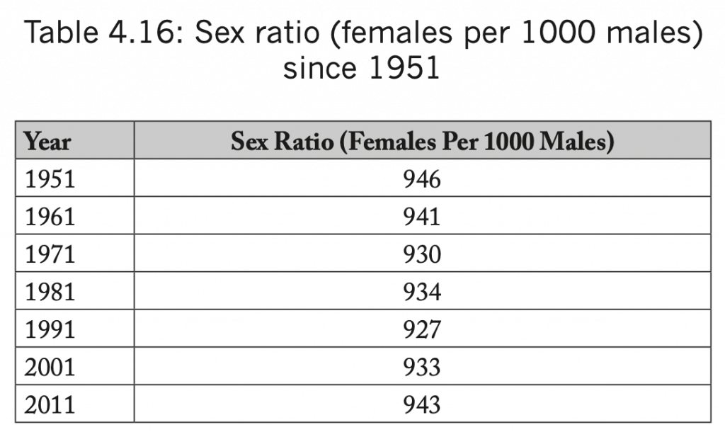 There is an interesting dimension missed by everyone. Polygamy is not even possible in India, as the number of women has been significantly lower than the number of men throughout the seven decades under study, as shown in Table 4.16.