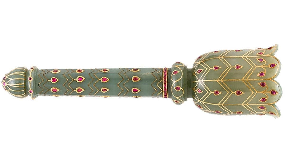 The handle of a chowrie from the Rajput courts of Rajasthan, now housed at the Los Angeles County Museum of Art (LACMA) features kundan work with diamonds set in gold