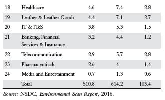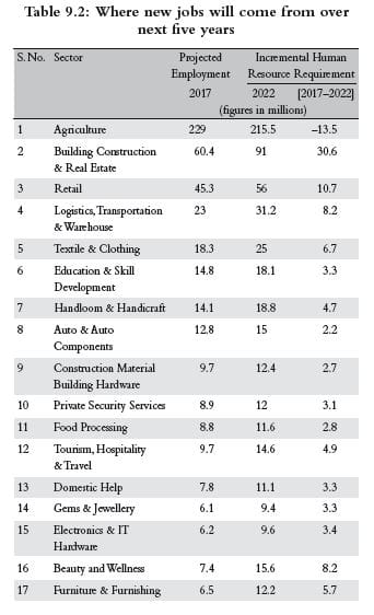 Beauty and wellness is another category that can create jobs—8.2 million, according to the 2016 ‘Environmental Scan’ report. But while corporations like Hindustan Unilever, Marico, and others are launching beauty and wellness chains, the vast majority of employment will be created in small boutique shops with two to three employees, and will thus be driven by small entrepreneurs. As for handloom and handicrafts, despite large demand for these products both in domestic and world markets, the weaver, artisan, tailor, and craftsmen are essentially self-employed people delivering what the world wants at low prices, with the middlemen and design creators taking the cream. Nothing to complain about, given the levels of poverty in this class, but the larger point is that incomes are lower than they need to be. The arrival of e-commerce platforms like Flipkart and Amazon allows small groups of handloom and handicraft companies or proprietary enterprises to obtain better prices, but till they develop their own brand names, margins will still be small.