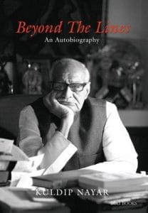 Kuldip Nayar’s autobiography ‘Beyond the Lines’ was published in 2012 by Lotus, Roli Books.