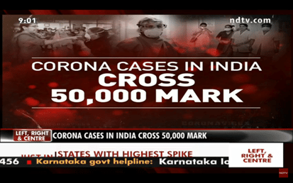 NDTV 24×7’s ‘Left Right and Centre’ saw anchor Nidhi Razdan looking worried: India has crossed the 50,000-cases mark, she said. But the troubling thing was that almost 10,000 of these cases were reported in the past three-four days. She explained that a lot of this spike was coming from states like Tamil Nadu and Maharashtra.