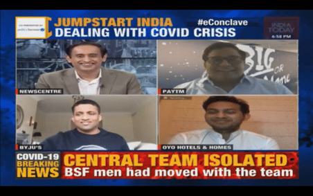 India Today’s Rahul Kanwal, on the other hand, was preoccupied with India’s start-up culture in conversation with CEOs of the country’s top three firms — Paytm, Oyo and BYJUS.