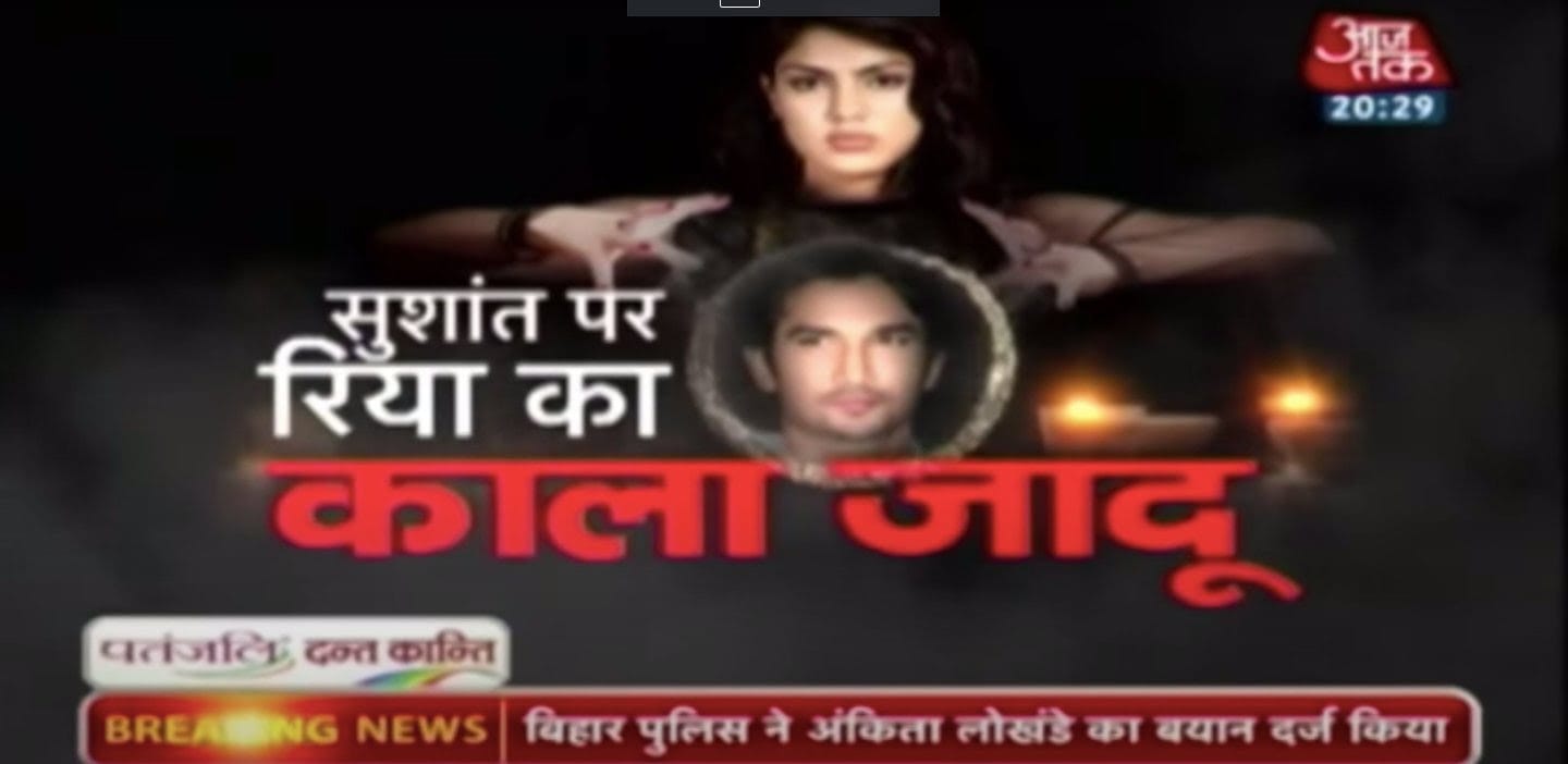 Finally, Aaj Tak left no stone unturned to talk about how Rhea Chakraborty did “kaala jaadu” (black magic) on Sushant Singh Rajput. Anchor Anjana Om Kashyap started the show by saying that she would “reveal” the truth that Sushant’s sister Mitu Singh has said in her statement to the cops.