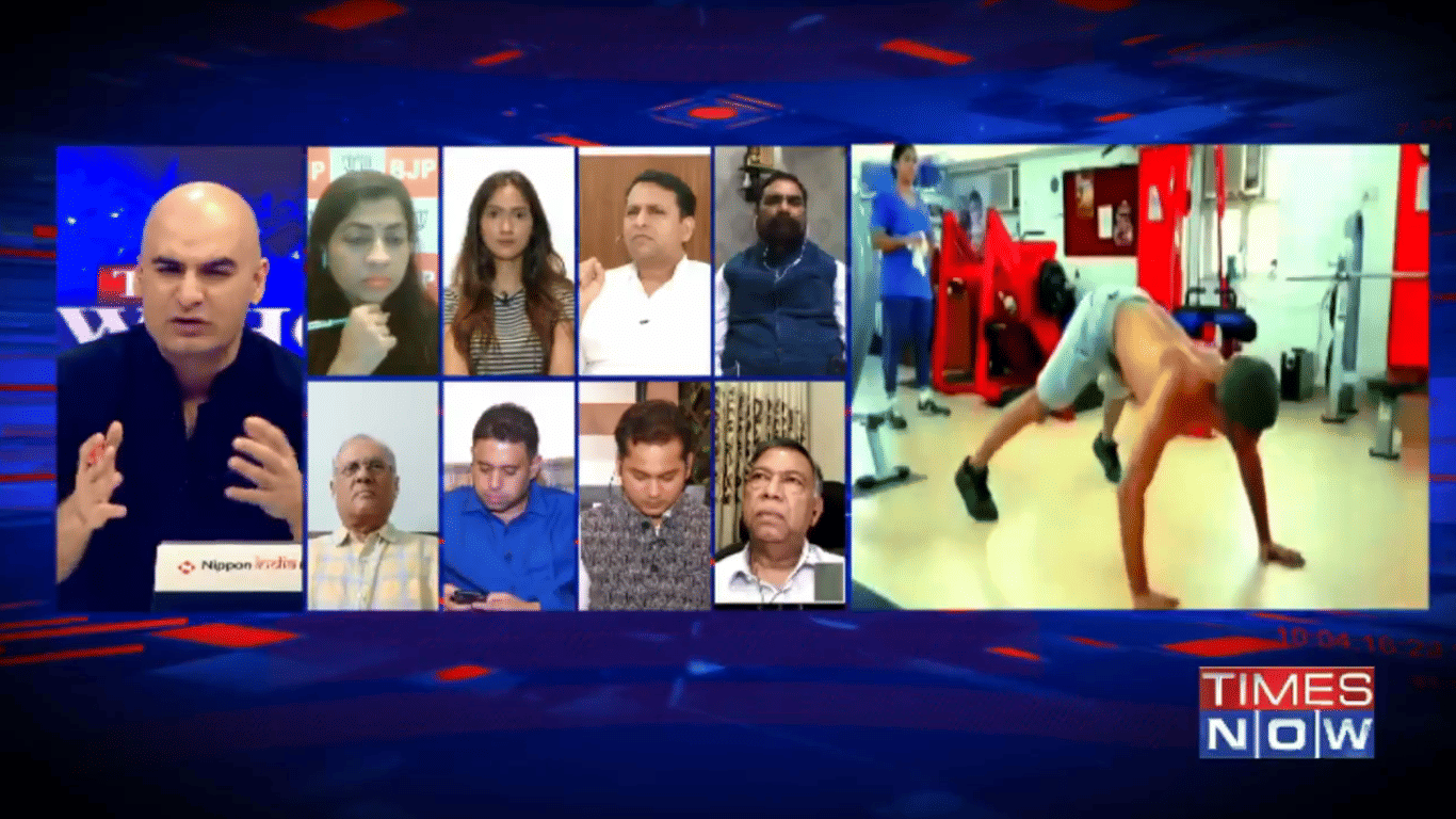 Times Now‘s Athar Khan debated Rajput’s case by first stating he will not be “pointing fingers” or holding a “media trial”. Okay, then.
