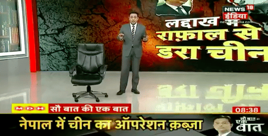 First, to News18 India, where Kishore Ajwani proclaimed, “LAC par ab China ke sainik jab doorbin se dekhte hai toh unhe Ladakh ki chotiyon par apni maut nazar aati hai” (When the Chinese soldiers now look at the LAC with a telescope, they see their own death on Ladakh’s peaks). Okay, then.