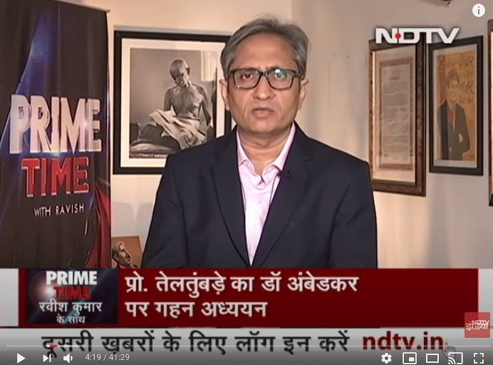 NDTV India‘s Ravish Kumar remains concerned with Anand Teltumbde. First, Kumar provided a case history of the Bhima Koregaon issue. Then he came to his main point: “During the Covid-19 pandemic, when instructions have been given to release inmates, that was when Professor Anand was arrested.” He said it was not just about Teltumbde, but also Dr Kafeel Khan, poet Varavara Rao and activist Sudha Bhardwaj.