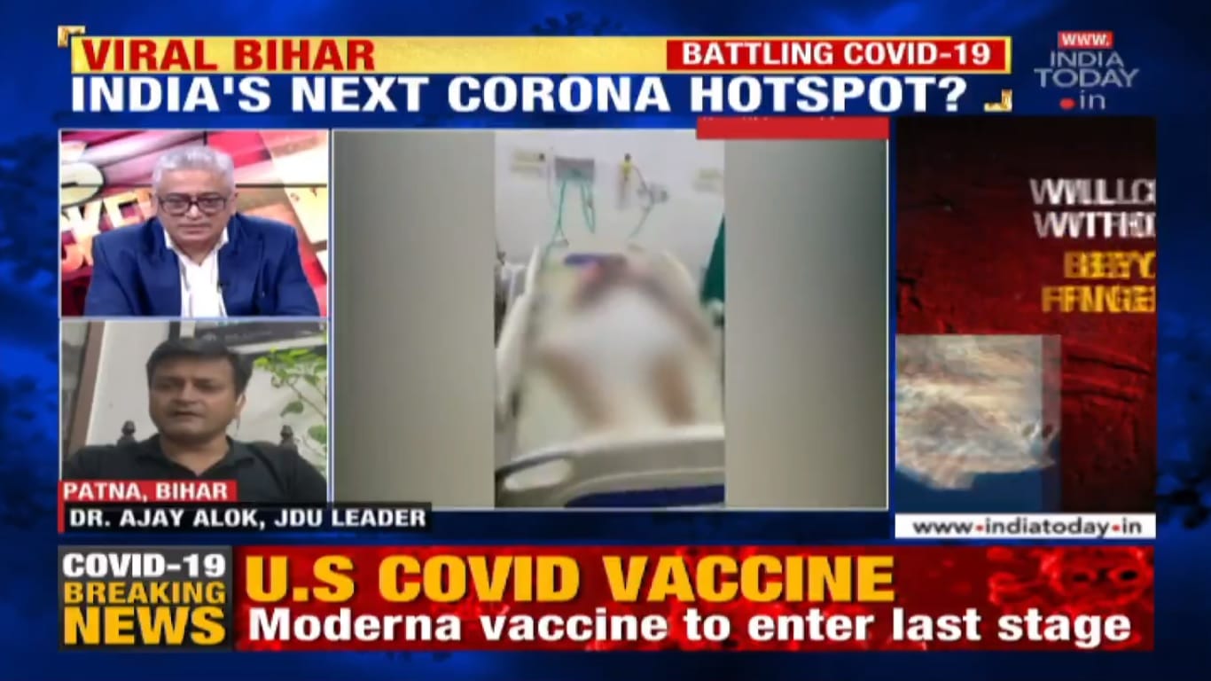 Refreshingly, India Today‘s Rajdeep Sardesai focused on the coronavirus and the crisis in Bihar. He grilled JDU leader Dr Ajay Alok on the state’s poor Covid management and alleged fudging of numbers. The channel played a shocking clip from Patna’s Nalanda Medical College and Hospital (NMCH) that showed abandoned dead bodies in the hospital that suggested it may be a Covid hotspot. Making no attempt to hide his indignation, Sardesai sarcastically said, “Presumably, Dr Ajay Alok, you will tell me these are isolated cases… exaggerated cases.”