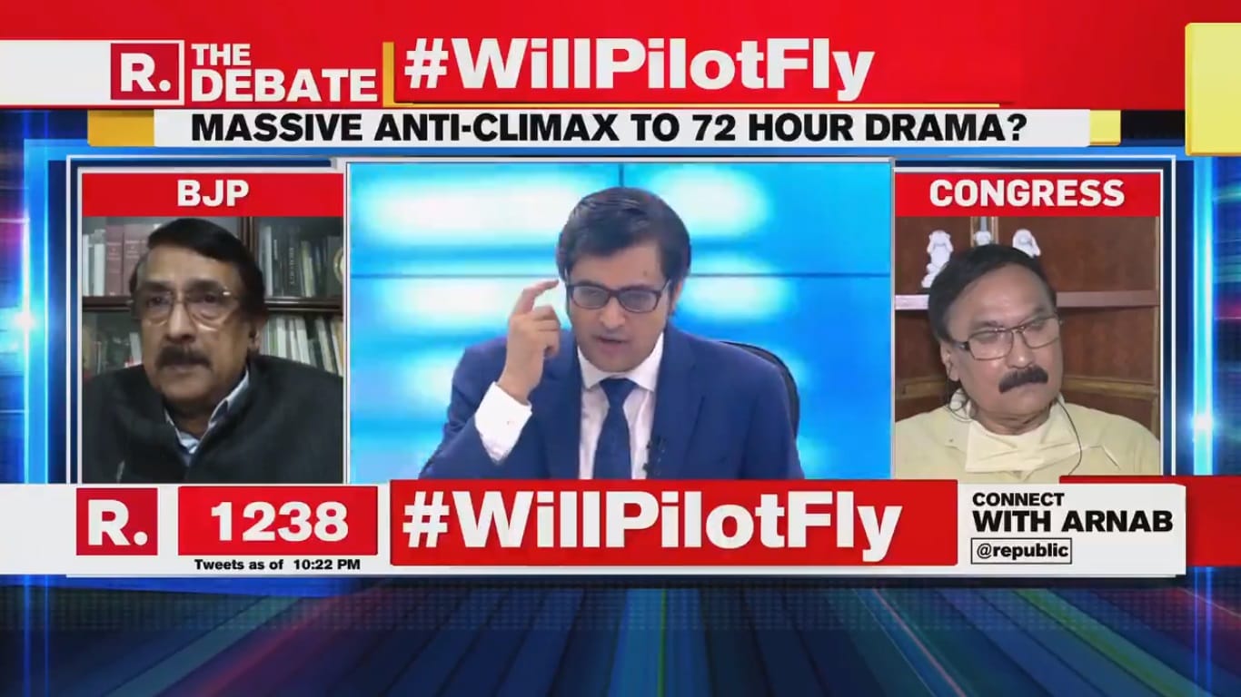 And the puns continue: on #WillPilotFly, Republic TV‘s Arnab Goswami sought to understand Sachin Pilot’s political stance and future. However, the discussion pivoted to the Gandhis, again, and Congress interim president Sonia Gandhi — with Goswami launching another scathing attack on her. This forced Congress leader Kirip Chaliha to rise to her defense: “This lady never wanted to come to politics. She never wanted to be part of the Congress party.”
