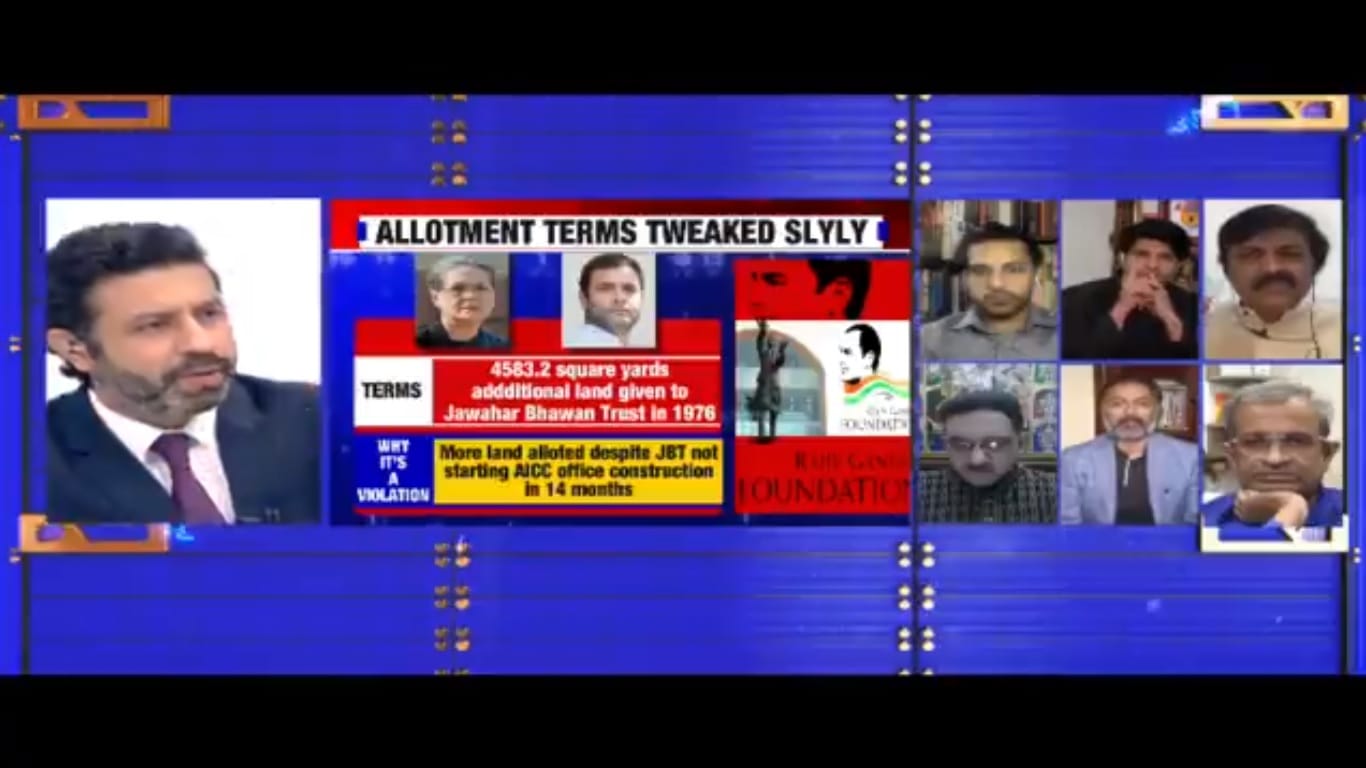 First up, the Gandhis. Times Now‘s Rahul Shivshankar debated the probe into the Rajiv Gandhi Foundation and other Gandhi family trusts, and highlighted an alleged land allotment scandal in which the rules of the allotment were changed to benefit the Gandhis.