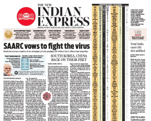The Indian Express leads with the “unprecedented” SAARC summit, held via video-conference where PM Modi “proposed creation of a COVID-19 emergency fund, for which it committed ‘an initial offer of RS$10 million’” the report says.
