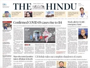 COVID-19 remains the story to read about, this Monday, across newspapers. The rising number of cases in India, the Prime Minister’s video conference with SAARC leaders on how to contain the outbreak and whether states should impose Section 144 to restrict public gatherings, were the top reports on the pandemic.