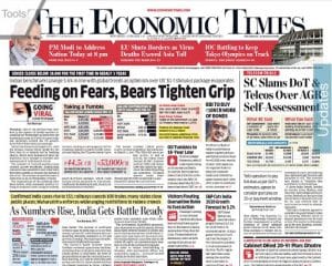 Supreme Court’s slamming of telcos makes second lead (“SC slams DoT & Telcos over AGR self-assessment) as it bans “any further reassessment or self-assessment of telcos adjusted gross revenue (AGR) dues, dubbing attempts to reopen the issue as tantamount to fraud and contempt of court, and ordering that operators pay interest and penalties in full.”