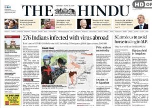 The Hindu leads with its report on “276 Indians infected with virus abroad.”