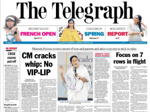Moving away from its clever headlines, the Kolkata daily notes that Chief Minister Mamata Banerjee appealed to all travelling to Bengal to strictly adhere to the rules to combat COVID-19, making it clear there was no space for doing “VIP-LIP (very important person-less important person)”.