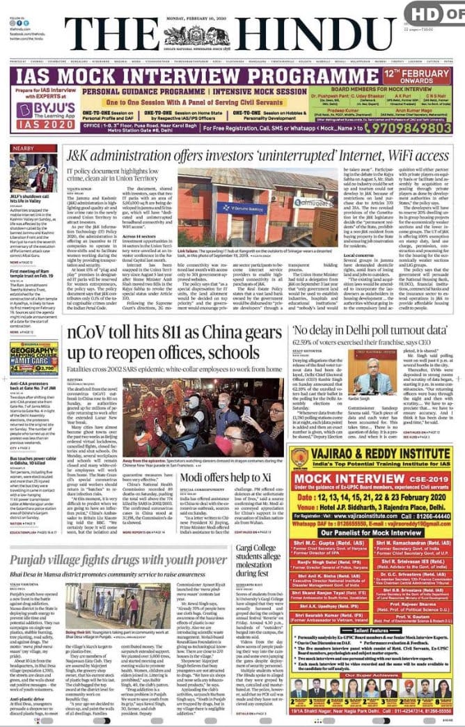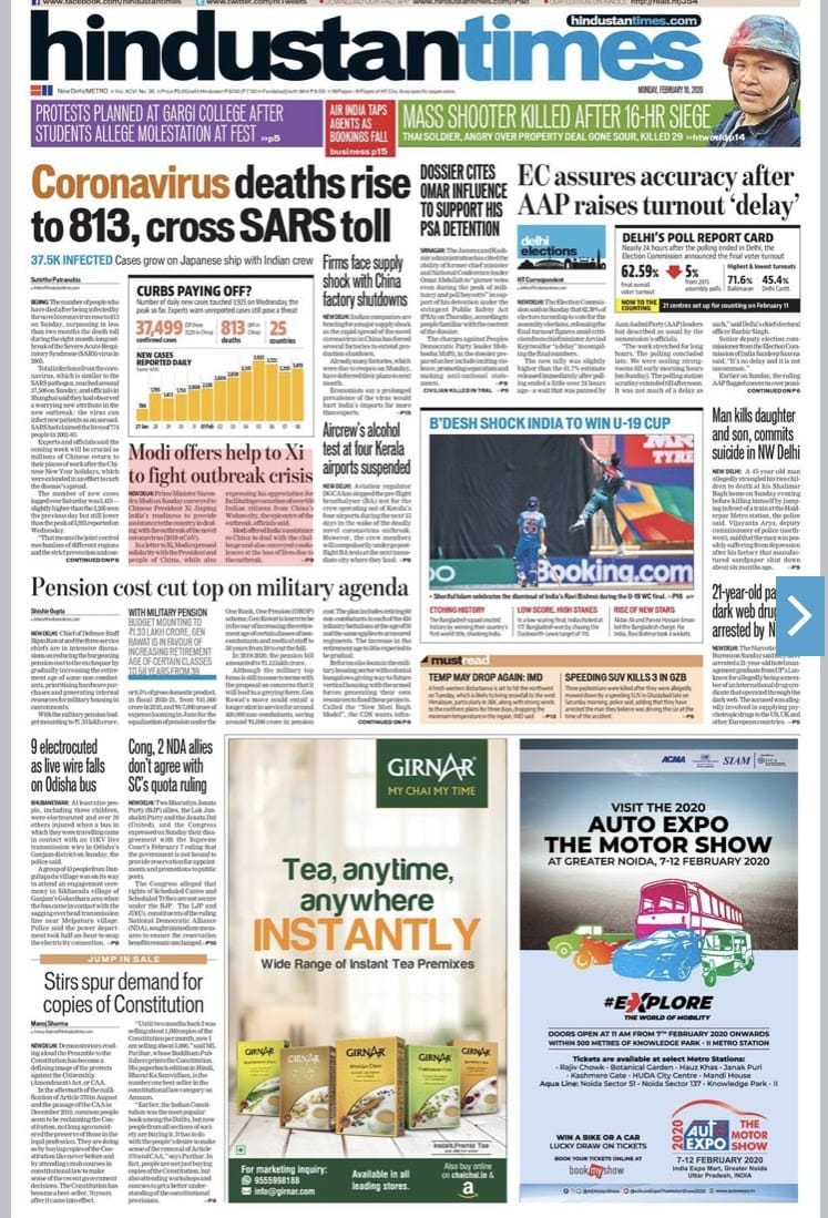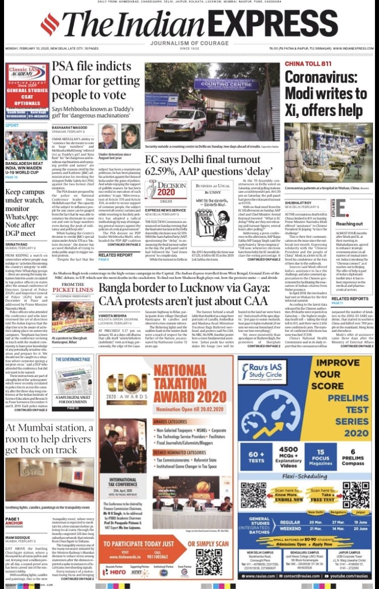 AAP’s suspicions over the delay in the Election Commission’s release of Delhi voter turnout numbers is the other highlight. Meanwhile, the financial papers are worried about disruptions in Indian markets due to the coronavirus outbreak.