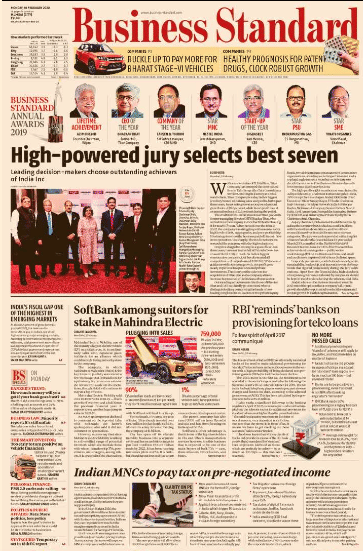 The paper focuses on the winners of the Business Standard Annual Awards 2019. The anchor highlights how the government’s move to allow multinational companies (MNCs) to enter into advance pricing agreements “will improve their compliance with Indian laws”. There’s also a small item of what seems to be an important story about India’s fiscal gap being one of the highest in emerging markets.