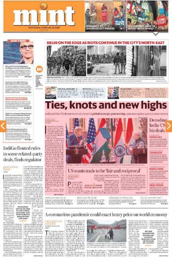 Also in ‘Indigo flouted rules’, read how the shares of InterGlobe Aviation Ltd, which operates Indigo airlines, plunged after it was found guilty violating “governance and listing guidelines in some of its related-party transactions”. There’s a similar anchor story about the $1 trillion-impact of the coronavirus outbreak on the world economy, which quotes the same data from Oxford Economy.