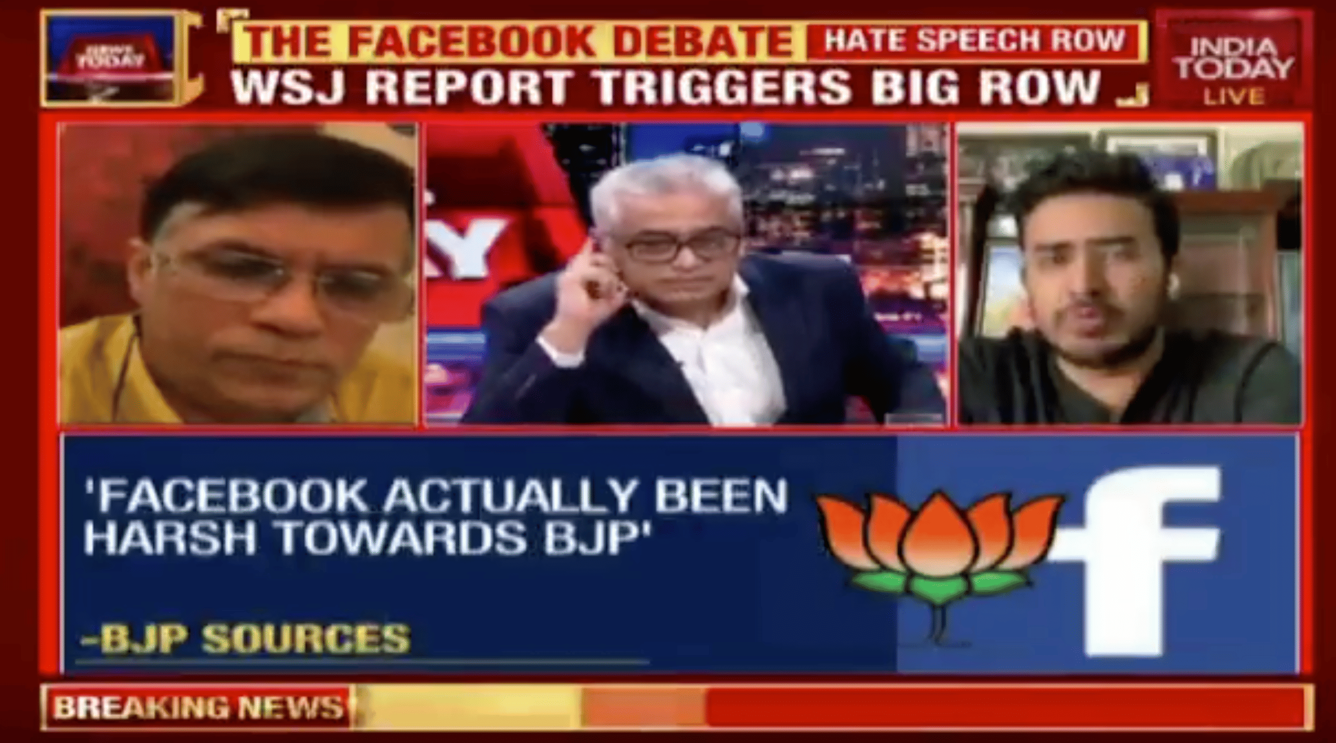 On India Today, the panel focused on the political aspect of the Facebook-BJP story, given that Facebook’s subsequent response stating that it “enforces policies on hate speech “without regard to anyone’s political position or party affiliation” has become the latest war between Congress and BJP.