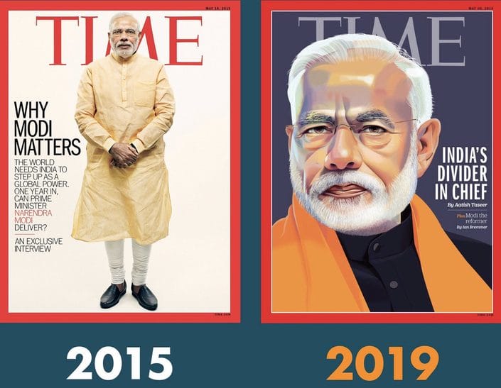 And please note how Time magazine has changed its tune. Compare the Time covers of before and after Modi’s emphatic win in the general elections.