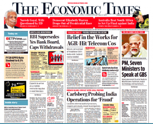 The Economic Times, in its rather busy front page, reports in ‘Relief in the Works dor AGR-Hit Telecom Cos’ that the government is “working on steps to provide relief to the telecom sector that will need to be ratified by the Cabinet”.