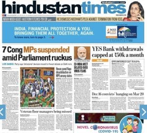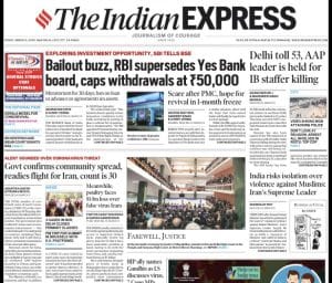 The Express’ lead provides more details on ‘Bailout buzz, RBI supersedes Yes Bank board, caps withdrawals at Rs 50,000’. It says RBI “superseded the board of directors of troubled Yes Bank for a period of 30 days ‘owing to serious deterioration in the financial position’ of the bank”.