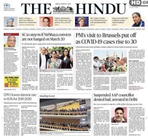 The most readable story here is ‘Tahir Hussain arrested, till in Delhi riots increases to 53’ which reveals that AAP’s Tahir Hussain was arrested Thursday. The report notes, “Hussain has been booked for the murder of IB’s Ankit Sharma, whose body was recovered from a drain in Chand Bagh on February 26. He denies the charges against him.”