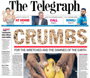 The Telegraph is quite clear what it thinks of the Centre’s packages: ‘CRUMBS’.