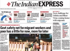 This is explained in the second story, ‘No cash in hand for migrants…’ Express says Thursday’s measures rely upon “two existing mechanisms, the MNREGS and PDS, to offer wage labour and free foodgrains to migrant labourers…However, there was no cash relief for the labourers, who have lost wages over 50 days of the lockdown”.