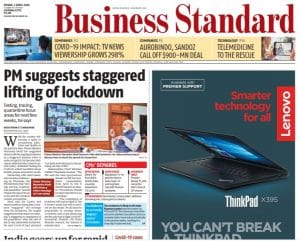 Like New Indian Express and Mint, Business Standard’s lead uses the word “staggered” to describe the Union government’s post-lockdown strategy (“PM suggests staggered lifting of lockdown”.