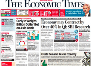 In ‘Economy may Contract by Over 40% in Q1: SBI Research’, it notes the State Bank of India (SBI) Research’s prediction that the “Indian economy faces a ‘humongous’ loss in the June quarter”. It “estimates the economy will contract by 6.8% in FY21 after a ‘smart recovery’ in the second quarter and “much better” growth numbers in the third and fourth quarters”, adds the report.