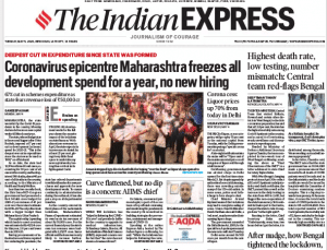 The lead story in The Indian Express is a special report from Mumbai: ‘Coronavirus epicentre Maharashtra freezes all development spend for a year, no new hiring’. Express writes that the state “worst-hit” by Covid-19 declared “a freeze on new capital works till March next year”. The state also imposed a 67 per cent cut in development (scheme) spend for 2020-21. According to sources, “This is the deepest ever cut in expenditure since the state was formed in 1960”, reports Express.