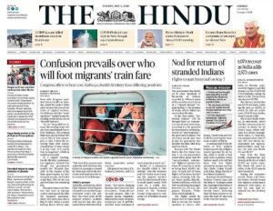 The Hindu’s lead says ‘Confusion prevails over who will foot migrants’ train fare’. This after Congress president Sonia Gandhi Monday “asked the party’s State units to bear the cost of rail travel of migrant workers and the Railways said the ‘sending States’ needed to pay for sending people home on the ‘Shramik Specials’.”