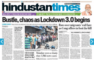 In its lead, “India Opens To Business, Cautiously”, the paper says a new challenge looms as the factories and industries begin to reopen after over a month of inactivity — “shortage of workers and logistical hurdles”.