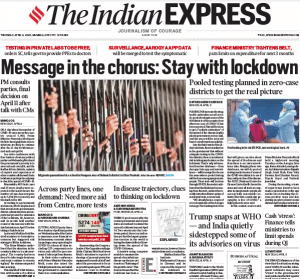 Mainstream papers remain convinced of a possible lockdown extension after PM Modi’s meeting with opposition leaders. The newspapers picked on the Prime Minister’s statement that the situation was akin to a ‘social emergency’.