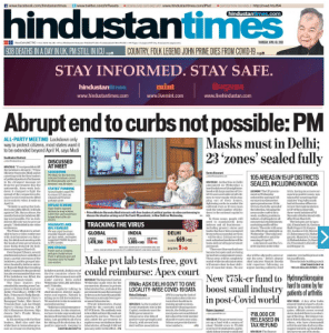 The paper also reports in ‘House to house checks in G’gm’, that the Gurugram administration has decided to conduct door-to-door surveys to trace Covid-19 cases. “About 1,200 small teams have been formed to survey four zones of the city to cover at least 400,000 households in urban, semi-urban areas, villages and slums,” the report notes.
