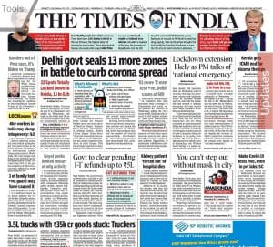 In less cheery news, the anchor story reports the state of Haryana’s health infrastructure. In (‘Docs fear Haryana ill-prepared for Covid challenge’), it says medical professionals have said that the “state is not only abysmally short of isolation wards, ICU beds and ventilators but also barely 7 per cent of the doctors and nurses are trained to use life-saving equipment”.