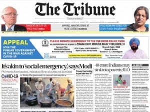The Tribune also leads with the PM’s “social emergency” comment. It also includes block quotes from two opposition leaders on the lockdown extension — BJD’s Pinaki Misra who said “life pre-corona and post-corona would not be the same” and Congress’ Ghulam Nabi Azad who said 80 per cent of leaders who were part of the PM’s video conference were in favour of extending the lockdown.