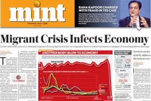 In ‘Migrant crisis infects economy’, Mint leads with news about the labour ministry seeking national trade unions’ help to “dissuade” migrant workers from returning to hometowns. The fear is that it will increase labour shortage and “imperil the government’s efforts to restart the economy”, it adds.