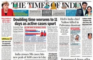 The Times of India’s lead story notes: “Doubling time worsens to 11 days as active cases spurt”. “The number of active Covid-19 cases is growing faster at 6.6 per cent now, leading to a shorter doubling time of 11 days, compared with 15 days on 2 May…”