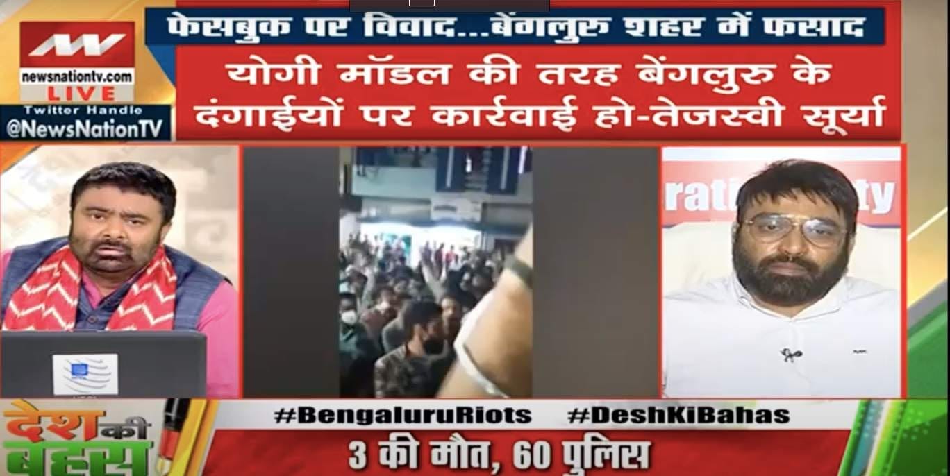“BJP says with a lot of pride that riots don’t take place in our states: Delhi riots, UP violence, anti-CAA clashes. After the Bengaluru violence, the CM is saying it was a pre-planned conspiracy. How did it happen right under the nose of the police? How could the rioters burn down an MLA’s house?” Chaurasia asked the BJP’s Nalin Kohli, who clearly had a busy evening.